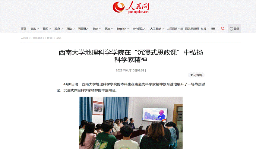 4月8日晚,西南大学地理科学学院的本科生在袁道先科学家精神教育基地展开了一场热烈讨论,沉浸式体验科学家精神的丰富内涵。