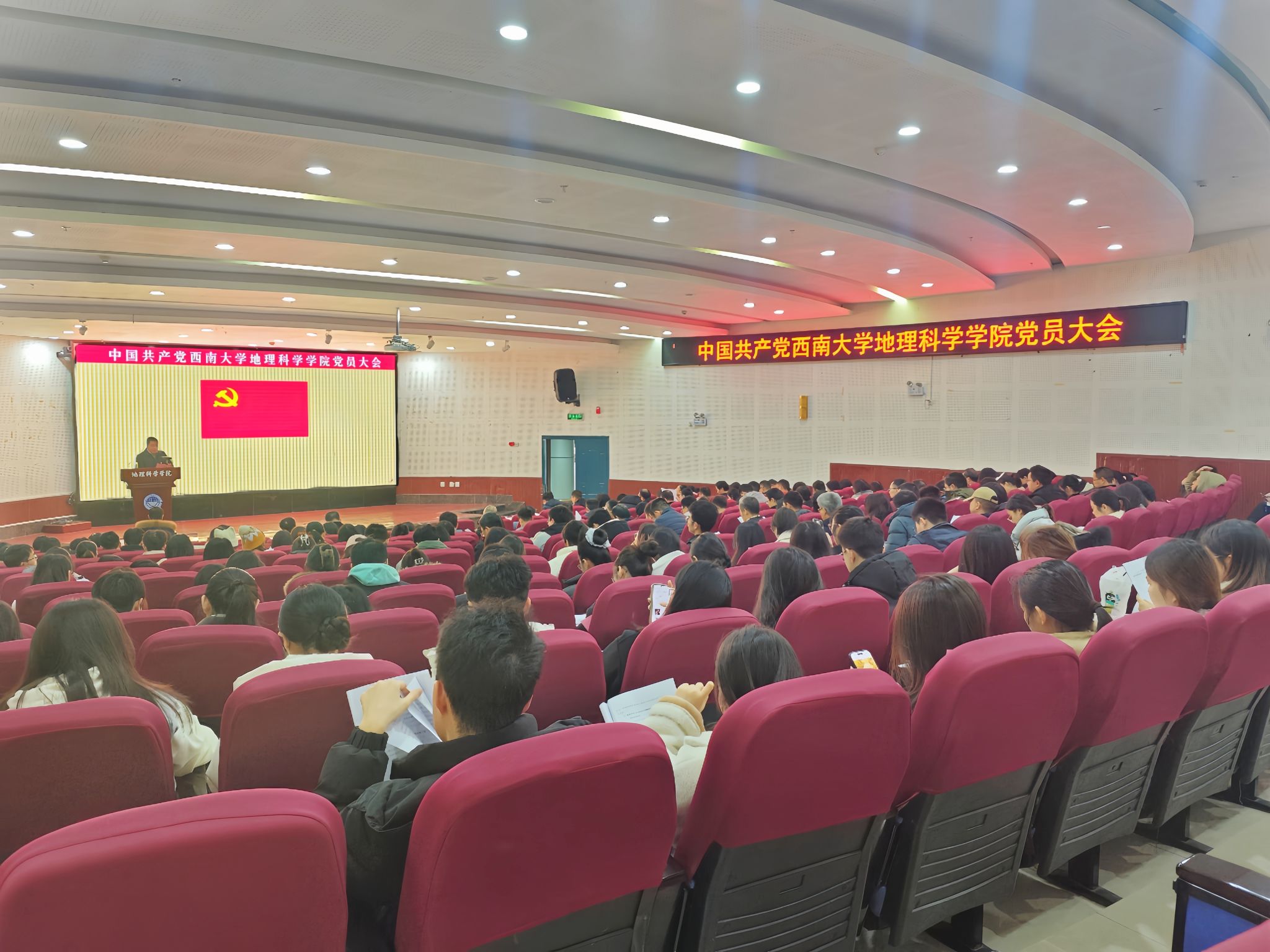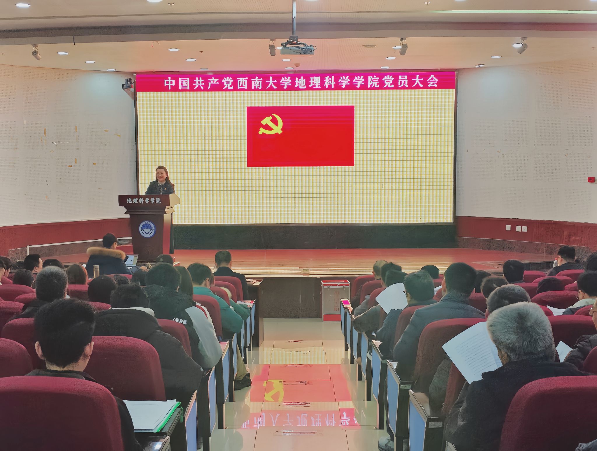 12月19日,中国共产党西南大学地理科学学院党员大会在学院101报告厅顺利召开。这次大会是在国家制定“十五五”发展规划推动国民经济和社会高质量发展,学校成功召开第四次党代会,学院积极推进高质量建设关键时期召开的一次重要会议。本次大会由学院党委副书记、纪委书记胡乐同志主持,191名正式党员参会。